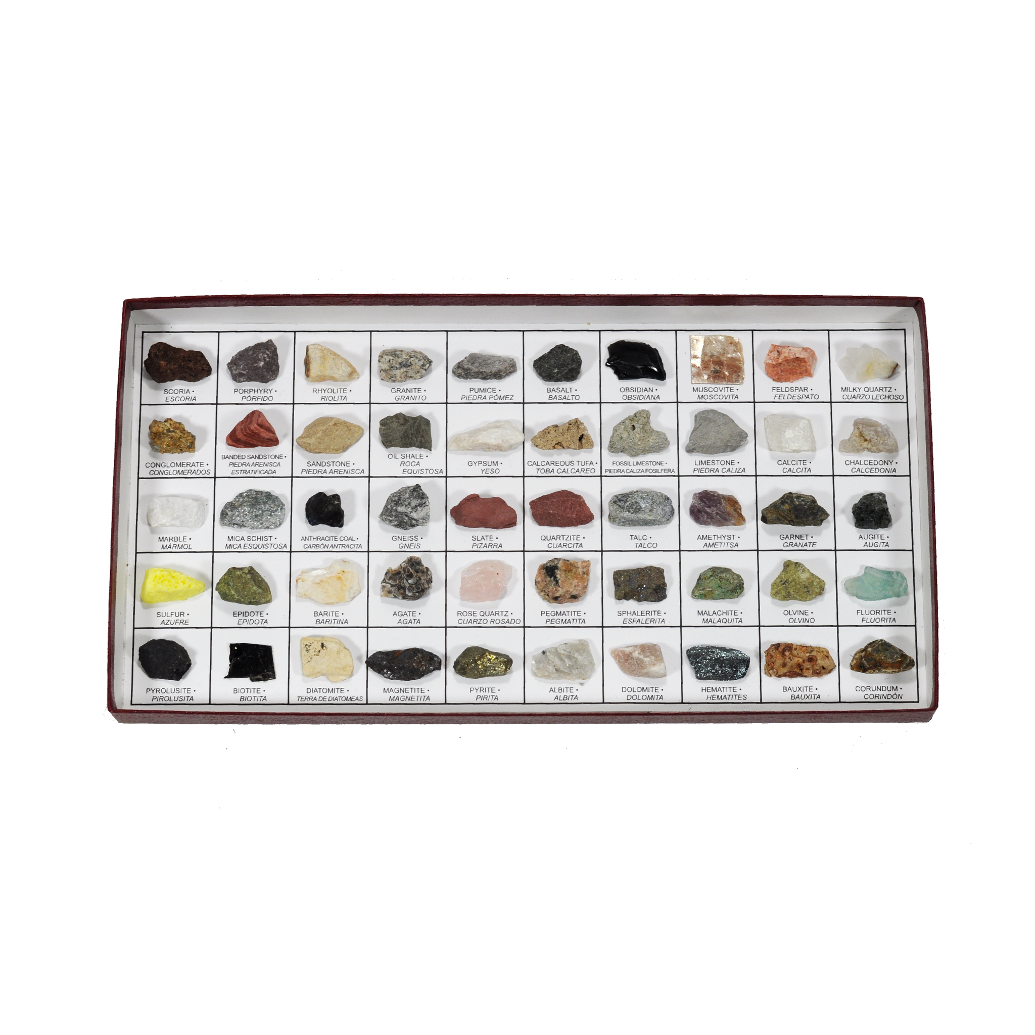 Excellent reference collection and a valuable aid in identifying and comparing common rocks and minerals of the western United States. This 50 specimen mounted collection displays common minerals and igneous, sedimentary and metamorphic rocks. Specimens are 1/2-1”.