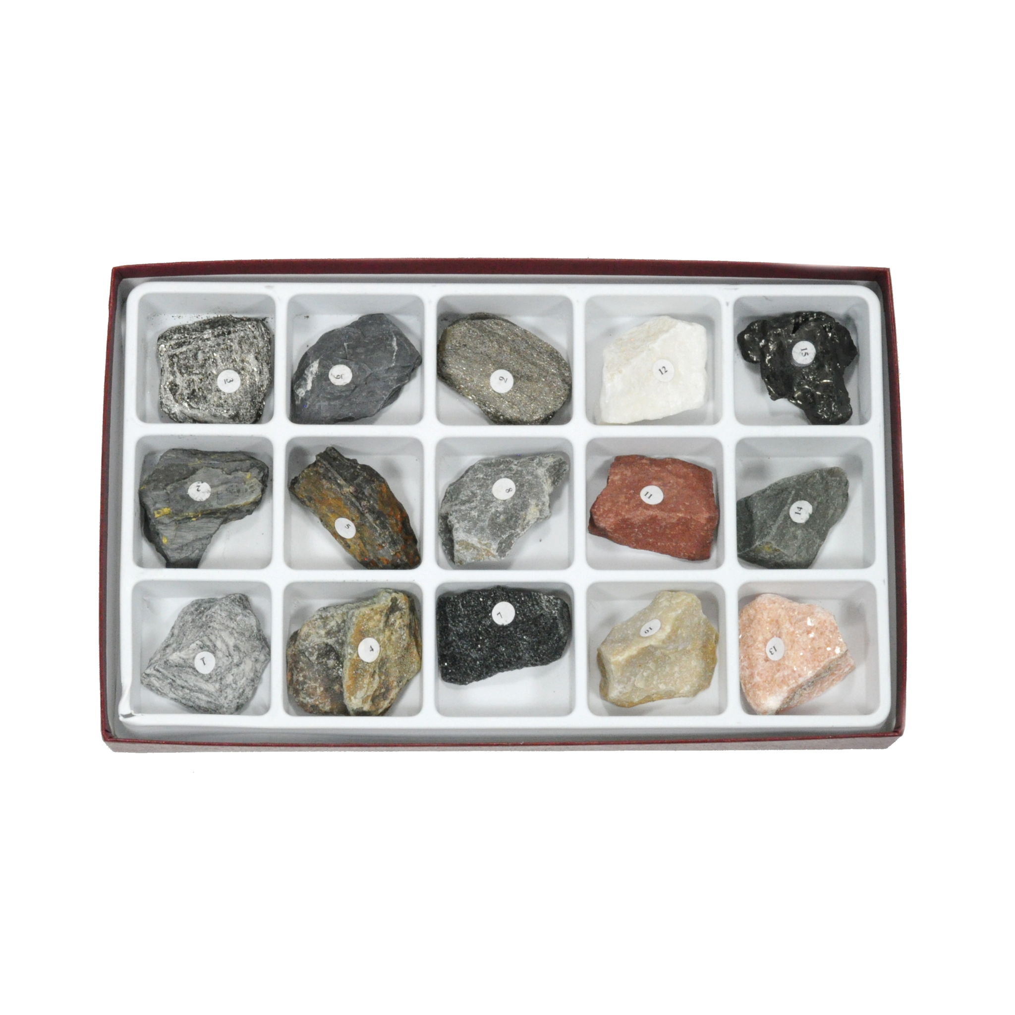 The 15 representative metamorphic rock specimens are each approximately 1-1/2” x 1-1/2” and are number-coded in a compartmented container. Grades 5-12. Geology is a required STEM subject.