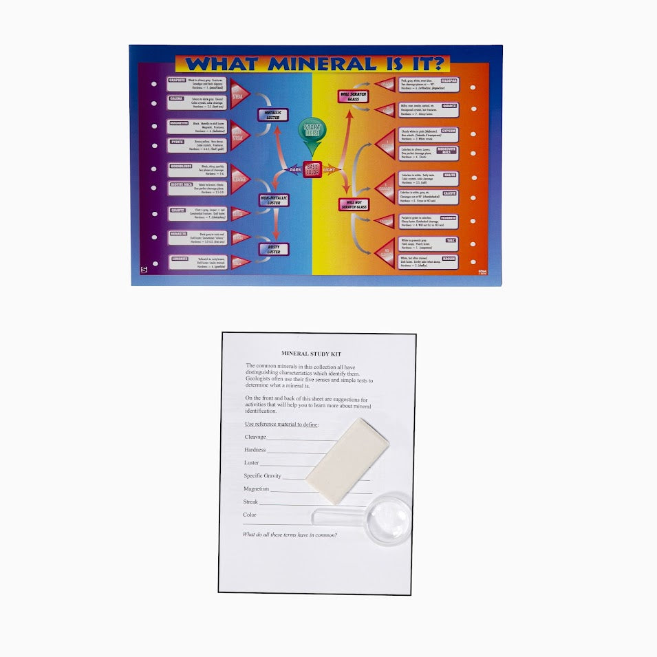 Students learn to identify these 15 - 1" x 1" specimens of common minerals by observing and testing their physical properties.Activity guide, magnifying glass, nail and streak plate included. An excellent introduction to minerals for Grades 4-12.Geology is a required STEM subject.
