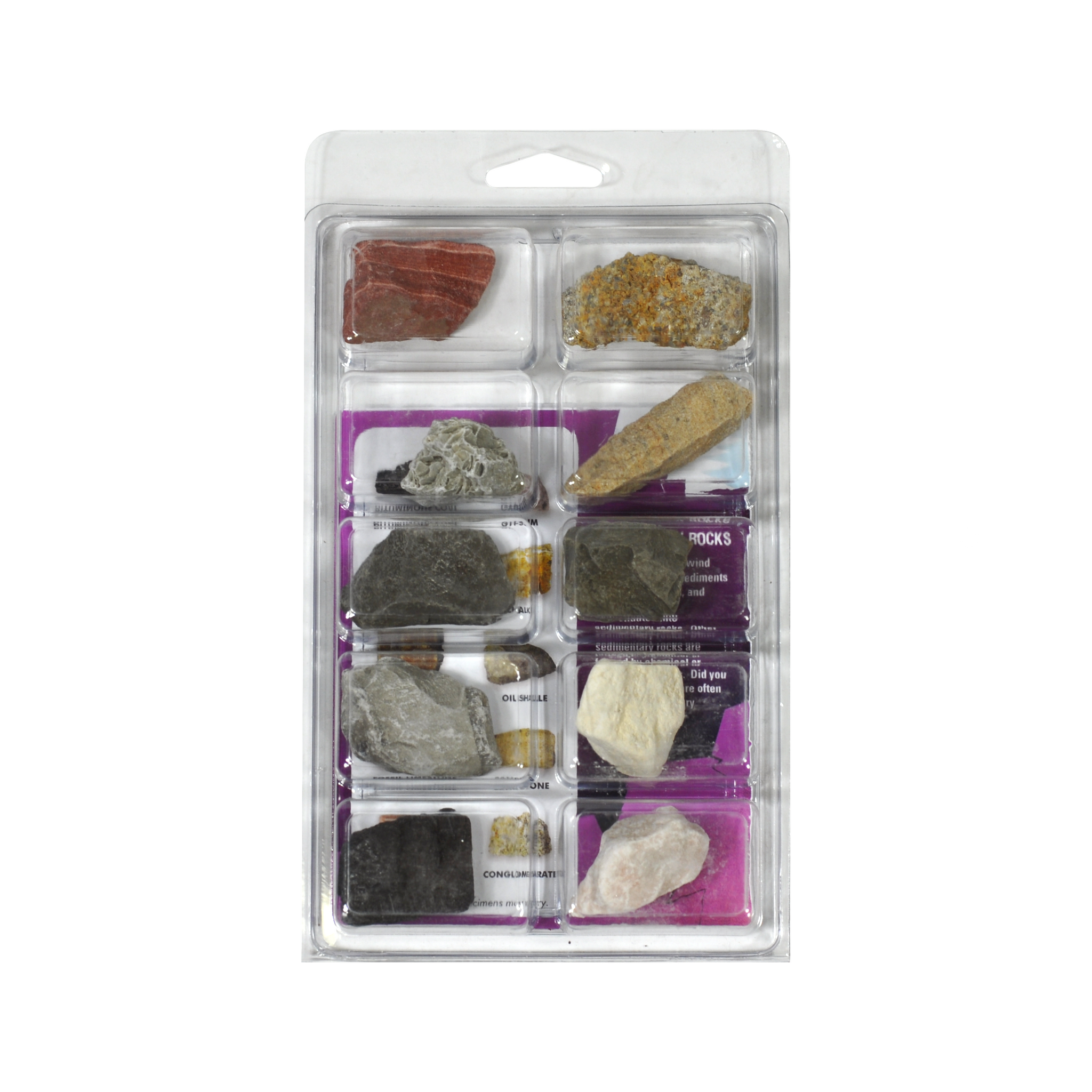 This Sedimentary Collection includes a set of 10 specimens enclosed in a handy, plastic storage container. The included rock identification chart, complete with images and a brief description will help kids better understand how sedimentary rocks were created. A perfect starter set for the young budding geologist! Specimens are 1" x 1 1/4" (Actual dimensions: 8x4.68x1, 1 lb) Grades 3+, Ages 8+. Geology is a required STEM subject.