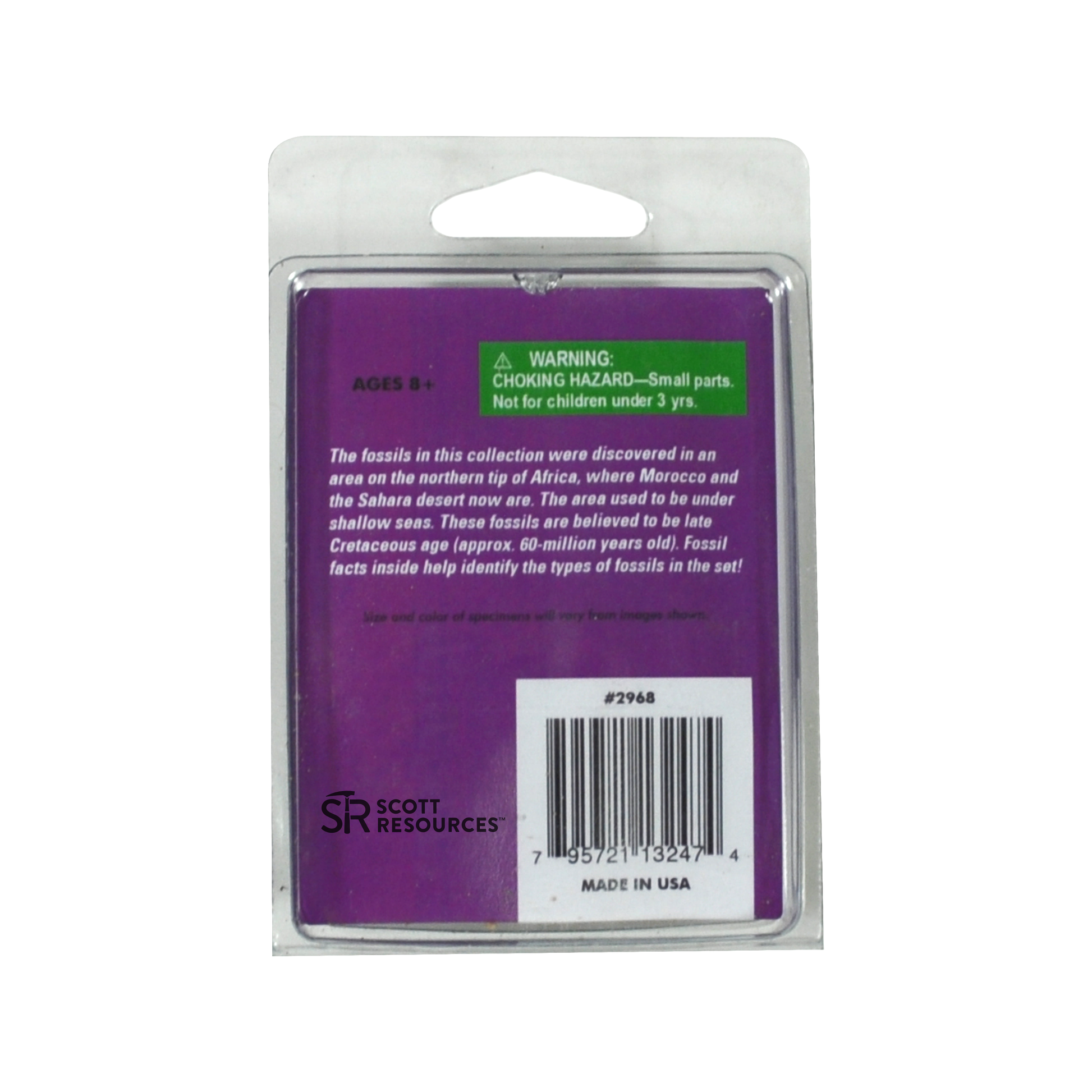 This Oceanic Fossil Collection includes different species of shark teeth, fish vertebra, stingray mouth plates, and other marine fossils. A brief description of three marine fossil types included. Discovered in the Phosphate mines in Morocco, these fossils are believed to be from the late cretaceous age: approximately 60 million years old. Ages 8+, Grades 3+. Geology is a required STEM subject.