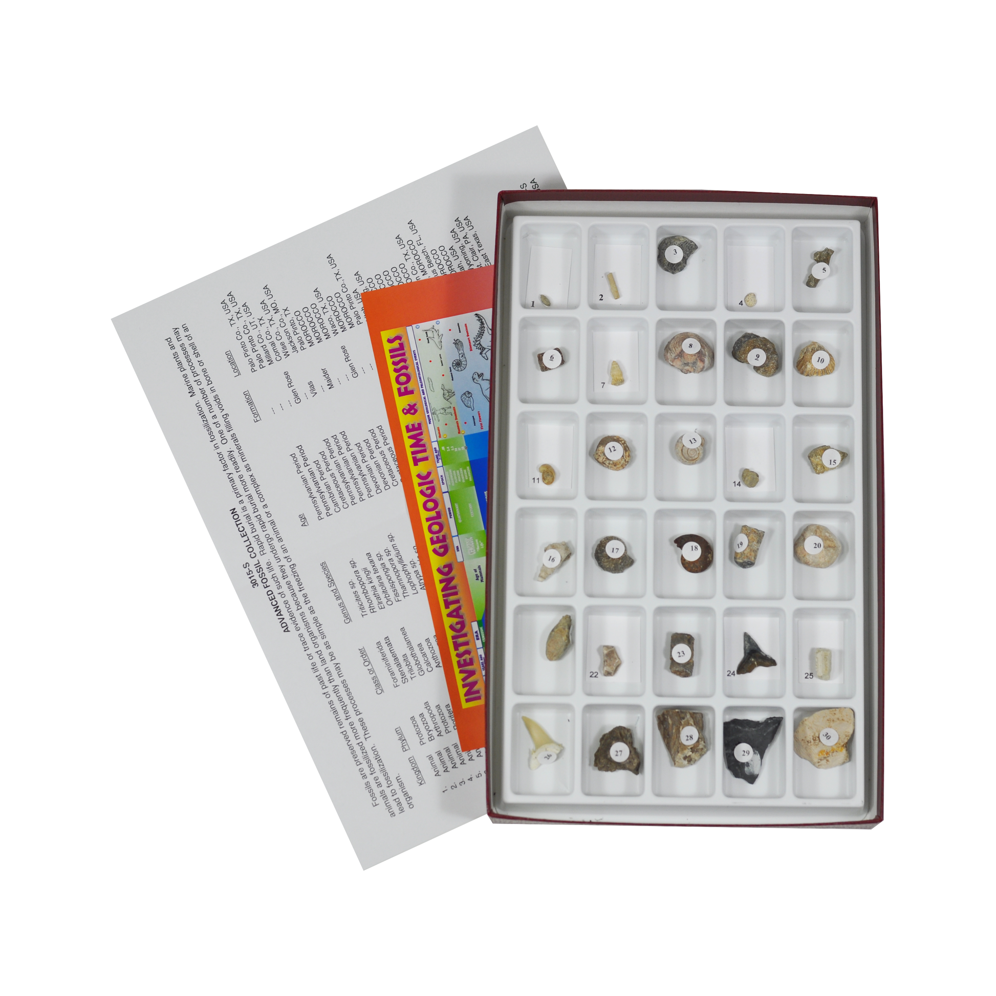 This comprehensive collection of 30 fossils contains demonstration specimens of animal phyla and plants from the Paleozoic, Mesozoic, and Cenozoic periods. The collection comes complete with a descriptive key sheet and geologic time chart. Grades 6-12. Geology is a required STEM subject.