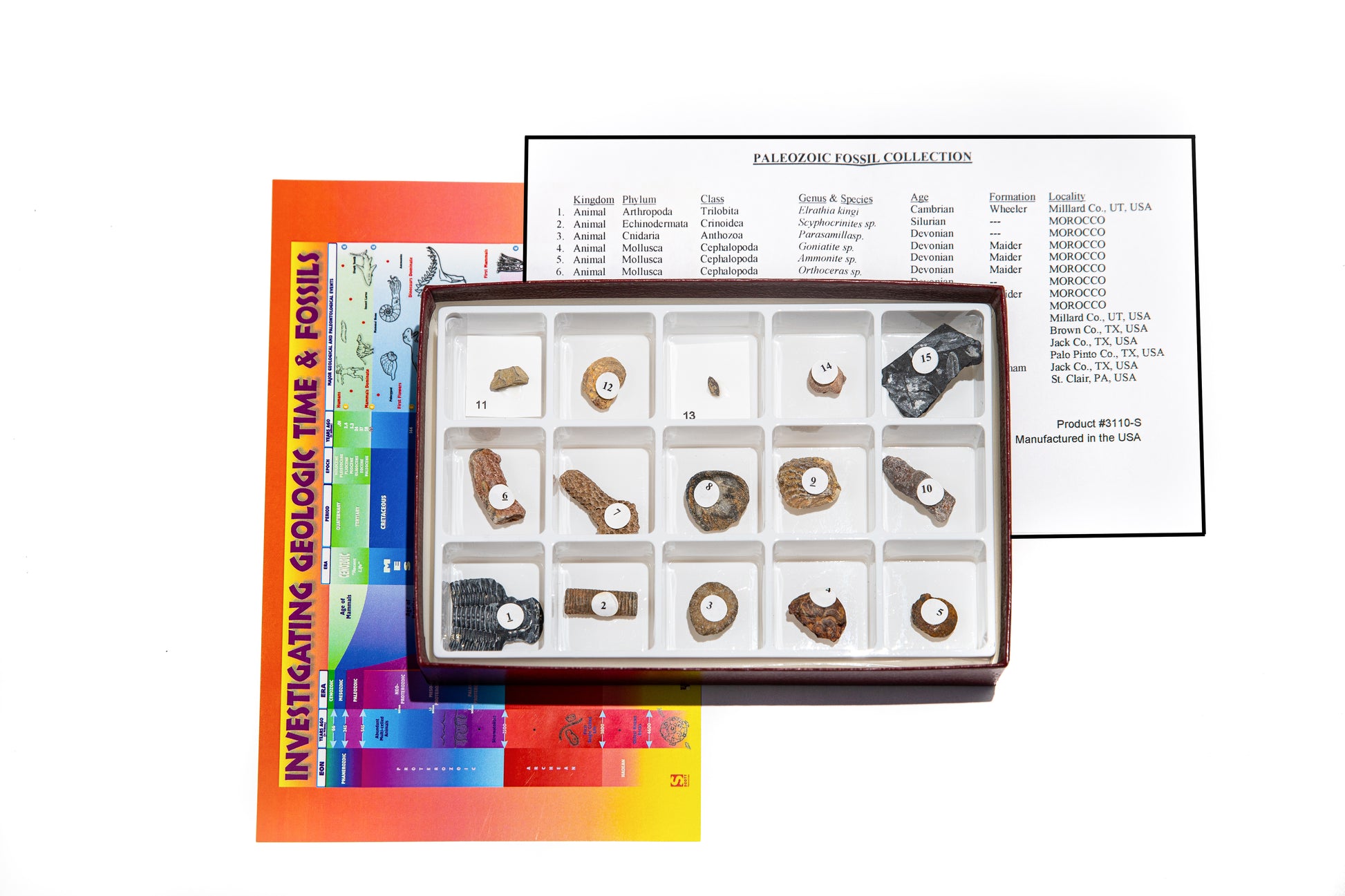 This collection contains specimens from the Paleozoic era. Collection is organized by periods from Cambrian to Tertiary and all of the major phylla are represented. Grades 7+, Ages 12+. Geology is a required STEM subject.